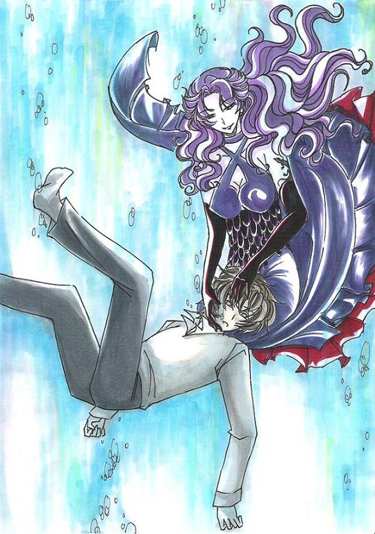 拙宅では初出の黒蜥蜴の姐御と明智で。 明智軽く彼岸に逝ってる顔っぽい(爆) ザ・ピーナッツの『恋のバカンス』聞いてたらムラムラッと描きたくなったので。 見れば分かりますが8割方の気合は姐さんの髪に注がれています(爆) 相変わらず服のデザイン性と配色はもうちょっと何とかした方がいいと思う今日この頃。